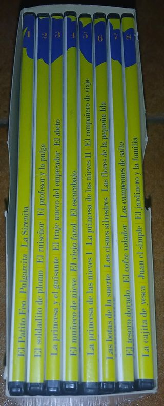 Conjunto de 8 DVDs de Un País de Cuentos con historias de Hans Christian Andersen. - El Patito Feo Pulgarcita La Sirenita - El soldadito de plomo El ruiseñor El profesor y la pulga - La princesa y el guisante El traje nuevo del emperador El abeto - El muñeco de nieve El viejo farol El escarabajo - La princesa de las nieves I La princesa de las nieves II El compañero de viaje - Las botas de la suerte Los cisnes silvestres Las flores de la pequeña Ida - El tesoro dorado El cofre volador Los campeones de salto - La cajita de yesca Juan el simple El jardinero y la familia