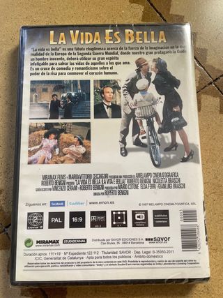 Película La Vida es Bella en formato DVD. - Ganadora de 3 Oscar: Mejor Película Extranjera, Mejor Actor y Mejor Banda Sonora. - Premiada con el Goya a la Mejor Película Extranjera. - Dirigida y protagonizada por Roberto Benigni.