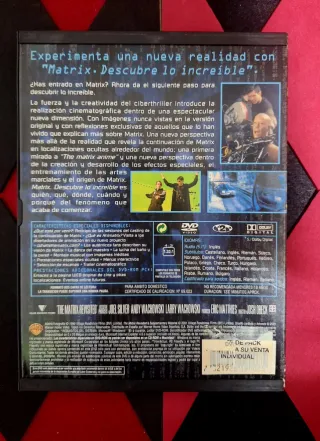 Película Matrix en formato DVD, con la edición Descubre lo Increíble. - Incluye contenido especial. - Imágenes nunca vistas. - Avance sobre la continuación de Matrix. - Descubre por primera vez Matrix Anime.