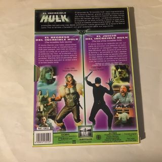 Pack de dos películas del Increíble Hulk. ---- SOLO PARA SUPER COLECCIONISTAS --- ---- SOLO EXISTE ESTA A LA VENTA Y ESTA COMO NUEVA --- ---- CAJA CONTENEDORA Y DVDS COMO NUEVOS, SIN MARCAS --- - El Regreso del Increíble Hulk, 1988 - 94 Minutos - El Juicio del Increíble Hulk, 1989, 95 Minutos - Las dos pelis protagonizadas por LOU FERRIGNO Y BILL BIXBY - Las dos pelis con idiomas CASTELLANO 2.0 y 5.1 e INGLES 2.0 COMO RECIEN DESPRECINTADAS, INCREIBLE ESTADO
