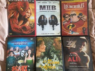 Colección de 6 películas en formato DVD. Precios individuales - Spider-Man 2 (4€) - Men in Black II (MIB II) (2€) - Los Increíbles (4€) - Scary Movie (3€) - La Reina de África (2€) - Ali (1€)