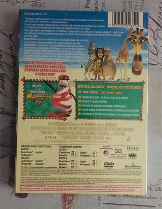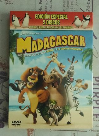 Película de animación Madagascar en DVD, edición especial con 2 discos. - Incluye la película Madagascar y La nueva película de los pingüinos. - Edición en español.
