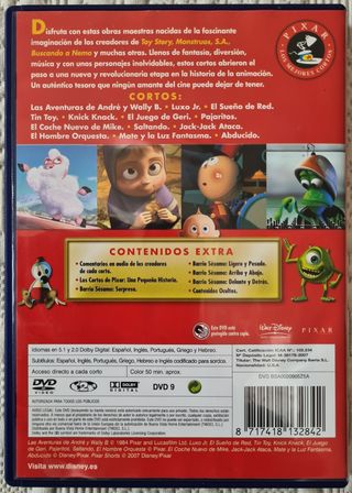 Título: Los mejores cortos de Pixar Volumen 1 Edición: Normal Formato: DVD Número de discos: 1 disco Edición: 1° edición vendida Compañía: Walt Disney Estado: Totalmente nueva tags: clásico accion intriga drama aventuras ciencia ficción comedia fantasía documental musical suspense amistad superación amor romance dibujos animados animación hd alta definicion 1080p dvd bluray blue ray película blancanieves winnie pooh mickey donald pluto goofy sirenita bella bestia rey leon pinocho durmiente merlin aladdin tarzan lilo stitch pinocho cenicienta dumbo frozen cars hadas madagascar gru minions pixar disney ghibli gainax columbia warner