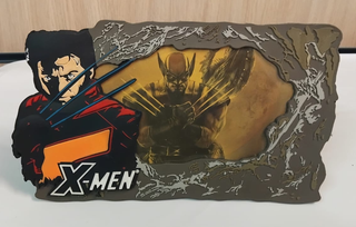 Marco de fotos de sobremesa, fabricado en relieve con goma lavable. Relieve con diseño de Lobezno de la película X-Men. (wolverine interpretado por hugh jackman) Las medidas son unos 21 cm de largo, y unos 15 cm de alto. Colocado sobre el escritorio abierto tiene una profundicad de 8,5 cm Está nuevo, se envía tal y como se muestra en la foto. Tiene protector frontal transparente. Si compras varias cosas puedo hacerte lote personalizado.