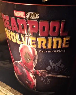 Cubo promocional de la película Deadpool y Lobezno de Marvel Studios. Presenta diseños de los personajes. - Diseño de Deadpool. - Ilustración de Lobezno. - Only in Cinemas (Solo en cines).
