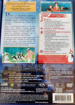 Película en castellano de Mary Poppins, edición especial por el 45 aniversario de los clásicos de Disney. Incluye 2 discos.