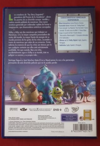 DVD de Monstruos, S.A. de Disney Pixar en español. Está en buenas condiciones. - Incluye la película Monstruos, S.A. en formato DVD. - Edición en español.
