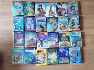 Colección de 22 cintas VHS de películas infantiles, principalmente Disney. Están en buen estado, algunas muestran señales normales de uso. - Incluye clásicos como Toy Story, Aladdin, Mulan, 101 Dálmatas, y muchos más. - Todas las películas están en español. - Perfecto para nostálgicos o para una colección familiar.