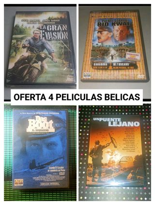 4 DVDs 📀 Las películas son : - Un puente lejano. 🗣️ 💬 🇩🇪✔️🇬🇧✔️🇪🇸✔️ 🆕 Sin abrir 🍾 - Das boot ( el submarino). 🆕 Sin desprecintar 🗣️ 💬 🇩🇪*🇪🇸*🇬🇧*🇮🇹 - Un puente llamado Kwai. 🔊🎶 🇪🇸 • 🇬🇧 • 🇮🇹 Subtítulos ~ 🇵🇹 ~ Estado ✌️✔️👌❇️ - La gran evasión. 🗣️ 💬 🇪🇦*🇬🇧 Subtítulos 🇬🇧👍🇪🇦👍 * Son totalmente nuevas y algunas vienen con DVD de extras.
