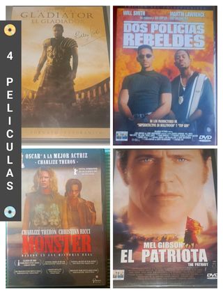 💿 Lote 4 Películas DVD 💿 - Monster. 🗣️💬--🇪🇸•🇬🇧 🆕 Abierto pero nuevo✅👍✔️🆗 - EL PATRIOTA 🎞️ 📽️. 🆕•✅ ✓ ~ SIN ABRIR ~ ✓ ✅•🆕 - Dos policias rebeldes 👌 Abierto pero sin usar ✅👍 - Gladiator. 🆕 Nuevo sin abrir 🔓 👍