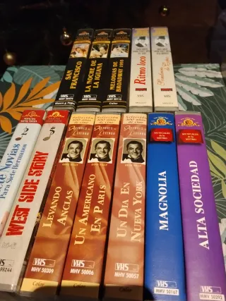 Colección de películas en formato VHS, incluyendo grandes clásicos y musicales. - San Francisco - La Noche de la Iguana - Melodías de Broadway 1955 - Ritmo Loco - Sombrero de Copa - Siete Novias para Siete Hermanos - West Side Story - Levando Anclas - Americano en París - Un Día en Nueva York - Magnolia - La Sociedad - Musicales de la Metro