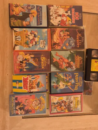 Colección de películas Disney en formato VHS. Unas 108, hay varias sin con el plastico - Aladdin - Alicia en el País de las Maravillas - Anastasia - Blancanieves - Bichos - El Jorobado de Notre Dame - La Bella y la Bestia - La Sirenita - El Rey León - El Libro de la Selva - Pocahontas - Tarzán - Toy Story - Winnie the Pooh - Los Aristogatos - Pinocho - Peter Pan - La Bella Durmiente - La Cenicienta - Oliver y su Pandilla - El Mago de Oz - El Planeta del Tesoro - La Espada Mágica - Hércules - El Tesoro de la Montaña - El Mundo Mágico de Bella - El Pequeño Nemo - La Fiesta de Pluto - Goofy - Mickey y sus Amigas ....