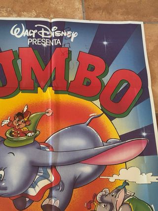 Póster original de la película Dumbo de Walt Disney Productions. Un clásico de la animación. Tamaño aproximado: 70 x 100 Doblado, el estado es el que muestran las imágenes. gancho: pinocho, la cenicienta, blancanieves, la sirenita, walt disney, infantil, los rescatadores, robin hood, rey leon, el libro de la selva, mickey mouse, mary poppins, winnie the pooh, fantasia, bambi, peter pan, la dama y el vagabundo, bella durmiente