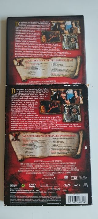 Edición especial coleccionista de Piratas del Caribe: La Maldición de la Perla Negra en DVD. Incluye dos discos con más de 10 horas de contenido extra. Las carátulas de los DVD están en muy buen estado. - Edición especial 2 discos - Más de 10 horas de contenido extra - Idioma: Español