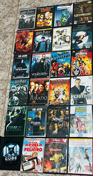 🎬 Lote de películas en DVD – Varios géneros Películas originales en DVD en buen estado. Acción, aventura, infantil, comedia, fantasía y sagas conocidas como Harry Potter. 💿 Precios: • todo -20 euros 📦 Venta individual o en lote 📍 Entrega en mano o envío 📩 Pregunta sin compromiso 🎬 PELÍCULAS EN DVD ) 🧙♂️ Saga Harry Potter • Harry Potter y el Cáliz de Fuego • Harry Potter y el Prisionero de Azkaban • Harry Potter y la Orden del Fénix ⸻ 🦸♂️ Superhéroes / Fantasía • Spider-Man 2 • Hulk • Catwoman ⸻ 💥 Acción / Aventuras • Piratas del Caribe • El mito de Bourne • The Bourne Identity (El caso Bourne)