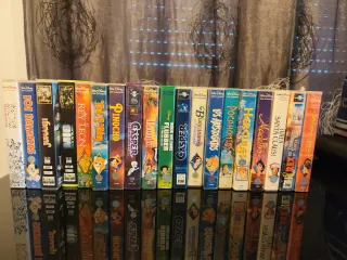 Colección de 15 cintas VHS para niños, en español y en buen estado. Las películas son: 101 dálmatas, Tarzán, El Rey León, Leyenda Urbana, Beethoven, 102 dálmatas, Bambi, El Jorobado de Notre Dame, La Sirenita, Aladdin, Pocahontas, El libro de la selva, Dinosaurio, El príncipe de Egipto y Barrio Sésamo. Ideales para nostálgicos o para disfrutar en familia.