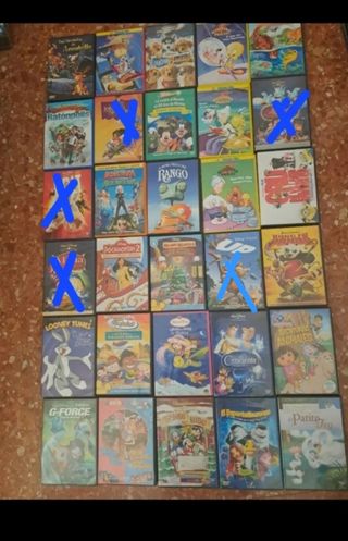 el rey leon 10 € toy story 5€ el libro de la seva 8€ 101 dalmatas 5€ bambi 10€ los aristogatos 5€ dumbo 10€ la dam y el vagabundo 5€ pocahontas 8€ timon y pumba 5€ merlin el encantador 10€ el jorobado de notredam 5 € en busca del valle encantado 2 5€ alicia en el pais de las maravillas 5€ pulgarcita 8€ pinocho 10€ robinhood 5€ tarzan8€ tod y toby 8€ la dama y el vagabundo 2 5€ blancanieves10€ la cenicienta10€ la bella y la bestia10€