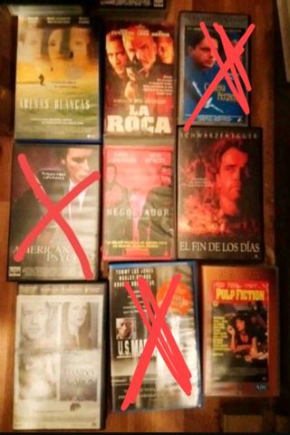 diario de una becaria a primera vista torrente 1 y 2 viven cara a cara speed el crimen de cuenca atapuerca abierto hasta el amanecer forrest gump triple xxx amor a quemarropa el cementerio viviente road trip four rooms Jack pulp fiction little Nicky jay y Bob el silencioso contraatacan american history x leaving las vegas Daniel el travieso Rocky 2 la vida es bella padre coraje very bad things los elegidos american pie 1 y 2 la colina de la hamburguesa buscando a Eva diario de un rebelde jumanji