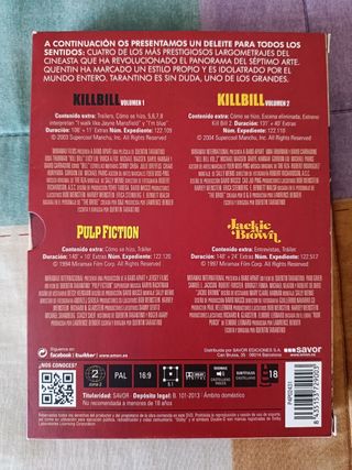 Set con 4 clásicos de Tarantino en DVD. Kill Bill Vol. 1 y 2, Pulp Fiction y Jackie Brown. Escucho ofertas