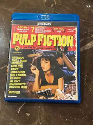 Película Pulp Fiction en formato Blu-ray. - Incluye audio en inglés y español. - Nominada a 7 premios Oscar. - Ganadora de la Palma de Oro en Cannes 1994.