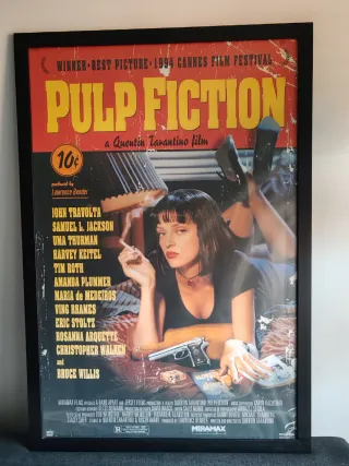 Póster de la icónica película Pulp Fiction, listo para colgar. - Medidas: 95x65 cm. - Incluye marco negro. - En excelente estado. Canva, pop art, tarantino cuadro, madera, edición limitada, Coleccionista