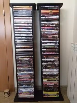 Más de 130 películas dvd en 2 torres de madera negra para guardar colección de dvd (cada una mide 1,10 m. de altura por 28 cm. ancho)con colección de más de 130 películas en dvd. entrega en mano provincia valencia. Algunas de las películas: (the box, el luchador,la leyenda de bruce lee, la momia, penitenciaria, culpable de inocencia,fuera de la ley, matrix revolution, pulp fiction, kill bill , reservoir dogs, django desencadenado, 300 , transformers el lado oscuro de la luna, misión imposible protocolo fantasma, x men la decision final, el tren de las 3:10, soldado azul, alatriste, el alquimista impaciente,código omega, el f