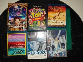 Lote de películas en formato Blu-ray y DVD. - Ratatouille (Blu-ray) - Toy Story 3 (DVD) - El Misterio del Nilo (Blu-ray) - National Geographic: Atmospheres (Blu-ray) - Cassandra's Dream (DVD) - Kylie Minogue: Live in Sydney (DVD) Y muchas mas 4 euros cada, ediciones especiales 5.