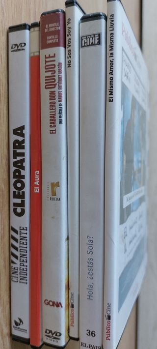 7 DVD en buen estado Cada DVD 3 € El Caballero Don Quijote de Manuel Gutiérrez Aragón Hola, Estas Sola? De Iciar Bollain Amores Perros de Alejandro Iñarritu +4 películas en DVD Cine Argentino No Sos Vos, Soy Yo El Mismo Amor, La Misma Lluvia Cleopatra El Aura. Ricardo Darin Norma Aleandro Están en buen estado. - Comedias y dramas románticos. - Idioma: Español. - Formato: DVD. 209