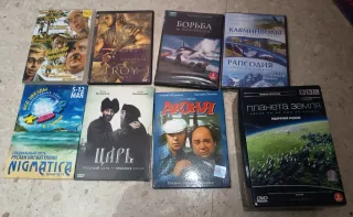 Vendo lote de DVDs en idioma ruso, con películas, series y documentales culturales y de naturaleza. Incluye: Cine histórico y bélico Series rusas Documentales de viajes y naturaleza Documentales BBC (Planeta Tierra) Títulos internacionales doblados al ruso (Troya) Ideal para rusoparlantes, aprendizaje del idioma, coleccionistas o amantes del cine y documentales. 📀 DVDs originales,buen estado general 📦 Se vende el pack completo o por separado. 📬 Entrega en mano o envío por Wallapop. 🔹 PRECIOS POR SEPARADO Documentales: Planeta Tierra(BBC, 5DVDs)→12€ Lucha por la supervivencia→6€ Resto→3€ Películas: Troya→5€ Zar(Царь)→4€ Afonya→4€