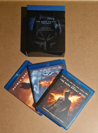 Colección completa de la trilogía de El Caballero Oscuro en formato Blu-Ray - Batman Begins - The Dark Knight - The Dark Knight Rises Idiomas: Inglés, Checo, Hungaro, Polaco, Ruso, Tailandés y Turco Más películas en mi perfil