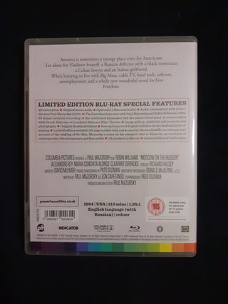 Cine Comedia Drama Robin Williams Paul Mazursky Maria Conchita Alonso Moscow On The Hudson Bluray Edición Powerhouse Indicator PAL UK Audio en Inglés Subtítulos Opcionales en Inglés Portada Reversible Incluye Libreto