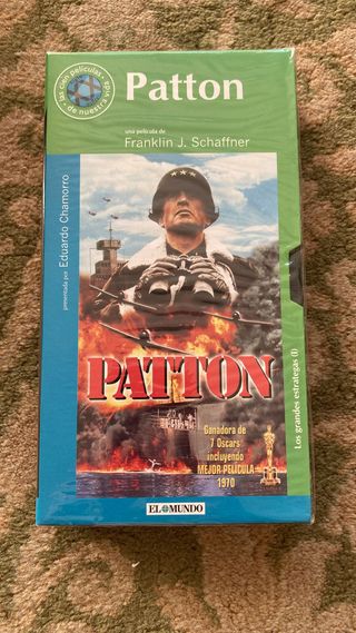 VHS Patton (1970) elata las hazañas militares del general George Patton, desde la derrota estadounidense en el paso de Kasserine (campaña del norte de África) hasta la entrega de una parte de Alemania a los rusos al terminar la Segunda Guerra Mundial, aunque el filme se enfoca en describir su peculiar personalidad. Parte de la colección de El Mundo Las cien películas de nuestra vida (siglo XX) (Fascículo 36). Producto nuevo, con precinto original íntegro, en perfecto estado. A estrenar Se pueden hacer packs con otros productos. Echa un vistazo a mi perfil para ver otros VHS precintados. Ideal para coleccionistas