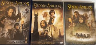 Colección completa de la trilogía de El Señor de los Anillos en formato DVD. Incluye las tres películas clásicas. De las primeras ediciones que existieron, películas + discos de extras - El Señor de los Anillos: La Comunidad del Anillo - El Señor de los Anillos: Las Dos Torres - El Señor de los Anillos: El Retorno del Rey