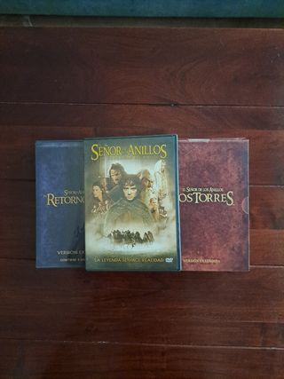 Trilogía completa de El Señor de los Anillos en DVD, incluyendo las versiones extendidas. - La Comunidad del Anillo (Edición del Coleccionista) - Las Dos Torres (Versión Extendida) - El Retorno del Rey (Versión Extendida)