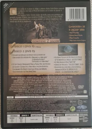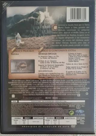 Número de discos : 2 El origen de la leyenda: Donde el cine cambió para siempre. Identidad Visual Inigualable: En la era del streaming, donde las películas "vuelan" de los catálogos, el DVD garantiza que la Tierra Media te pertenece para siempre. La calidez del formato físico preserva la estética artesanal de Weta Workshop. El Tesoro de los Extras: Incluye la magia detrás de las cámaras que hoy se pierde en las plataformas digitales: documentales exclusivos sobre cómo se construyó Hobbiton y cómo se dio vida a los Orcos. "Un Anillo para gobernarlos a todos..." y una edición que no puede faltar en ninguna colección que se precie.