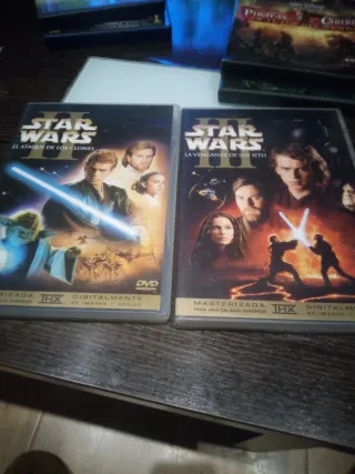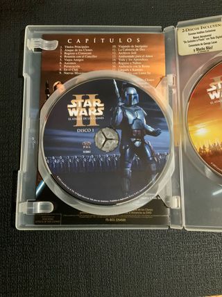 Pack de dos películas de Star Wars en formato DVD. Masterizada y con contenido adicional. 2 discos por peli. - Star Wars: Episodio II - El Ataque de los Clones - Star Wars: Episodio III - La Venganza de los Sith - Edición en español masterizada.