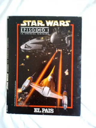 Colección de láminas de Star Wars: Episodio I - La Amenaza Fantasma. - Incluye personajes como Qui-Gon Jinn, Obi-Wan Kenobi, Padmé Amidala y Jar Jar Binks. - Representa naves y escenas de la película. - Publicado por El País.