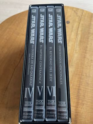 Trilogía original de Star Wars en formato DVD incluyendo las películas IV, V y VI, y un DVD adicional con contenidos adicionales. Masterizadas digitalmente THX para una calidad superior de imagen y sonido. - Star Wars: Episodio IV - Una Nueva Esperanza - Star Wars: Episodio V - El Imperio Contraataca - Star Wars: Episodio VI - El Retorno del Jedi - Contenido adicional incluido