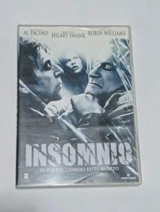 Película en formato DVD de Insomnio. - Protagonizada por Al Pacino, Hilary Swank y Robin Williams. - Título en español: Insomnio. - Subtítulo: Dormirás cuando estés muerto.