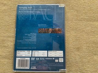 DVD de música Swinging Bach de TDK Collection, con actuación en el Marktplatz de Leipzig. Libretto 16 pag. DTS 5.1/ DOLBY DIGITAL 5.1 /LPCM STEREO subtítulos english/french/spanish/german/italian/japanese DVD9 single side formato 16:9 Recorded 28.07.2000 total time 128 minutos Documentary”Bach Statements” - Incluye la participación de Bobby McFerrin. - Artistas destacados: Adele Anthony & Gil Shaham, Jacques Loussier Trio, King'singers, Jiri Stivin & Collegium Quodlibet, German Brass, Quintessence Saxophone Quintet, Turtle Island String Quartet y Gewandhausorchester Leipzig. - Formato: DVD Video. Se envia, con cuidado, embalaje.