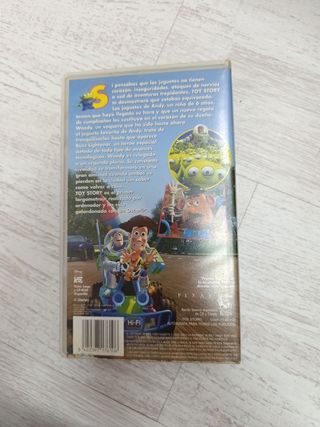 Película clásica de Disney Pixar, Toy Story, en formato VHS. - Presentada por Walt Disney Pictures. - Incluye el título Toy Story (Juguetes). - Lema: Más que amigos, más que rivales, más que juguetes.