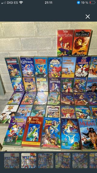 ✅ Amplia colección de películas clásicas de Disney en formato VHS. Revive la magia de estos entrañables títulos. - Incluye películas como El Rey León, La Sirenita, Hércules, Mulán, Pocahontas, Peter Pan, Toy Story, Blancanieves y muchos más. - Todas las cintas están en perfecto estado para su disfrute. - Ideal para coleccionistas y amantes de la animación clásica. Algunas de ellas repetidas ‼️✅ TODAS ORIGINALES ‼️✅