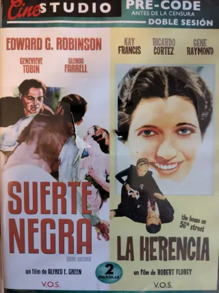 Pack de dos películas del cine precode en DVD: Suerte Negra y La Herencia. - Suerte Negra (Dark Hazard) dirigida por Alfred E. Green. - La Herencia (The House on 56th Street) dirigida por Robert Florey. - Incluye ambas películas en V.O.S. (Versión Original Subtitulada). Contiene libreto exclusivo.