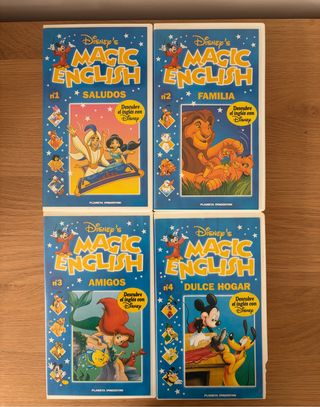 Colección de 4 cintas VHS de Disney's Magic English. 1€ cada uno o todos por 3,5€. - Volumen 1: Saludos - Volumen 2: Familia - Volumen 3: Amigos - Volumen 4: Dulce Hogar Solo se vende mediante envio por wallapop (No vendo en persona)