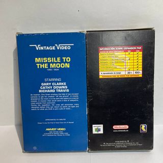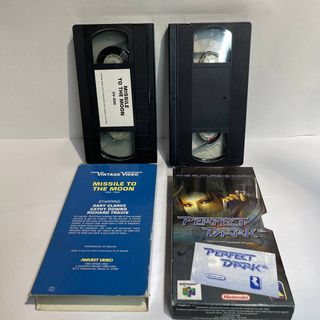 Dos cintas de vídeo VHS, Missile to the Moon y Perfect Dark - Missile to the Moon de Vintage Video. - Perfect Dark con la frase The Future is Dark! Nintendo