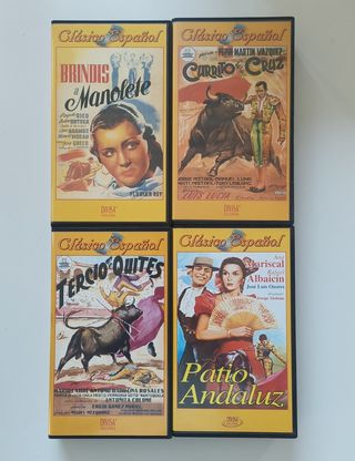 Preciosa colección de 4 cintas VHS de Clásico Español centradas en el cine taurino. - Brindis a Manolete - Carrito de la Cruz - Tercio de Quites - Patio Andaluz