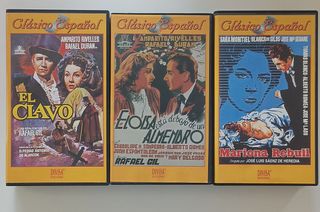 Preciosa colección de tres películas clásicas del cine español en formato VHS. - El Clavo - Eloísa está debajo de un almendro - Mariona Rebull - Títulos basados en obras literarias.