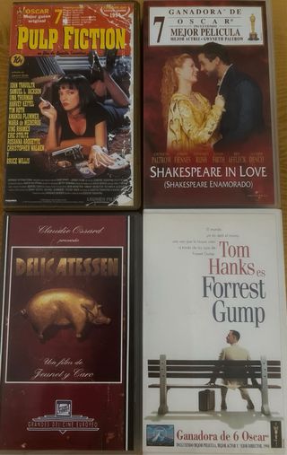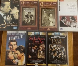 Colección de 11 VHS (todos por 3 Euros) 7 cine clásico: - Sabrina - Arsenico por Compasion - La Costilla de Adan - La Fiera de Mi Niña - Filadelfia - El Secreto de Vivir - Solo los Angeles tienen alas 4 Premiadas: Delicatessen Pulp Fiction Forrest Gump Shakespeare in Love