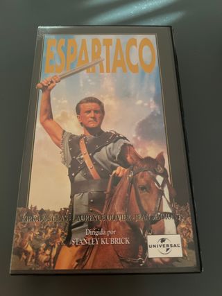 Película clásica Espartaco en formato VHS. - Protagonizada por Kirk Douglas, Laurence Olivier y Jean Simmons. - Dirigida por Stanley Kubrick. - Logo de Universal Pictures.