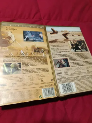 Dos películas de Star Wars en formato VHS. - Star Wars: Episodio I - La Amenaza Fantasma - Star Wars: Episodio II - El Ataque de los Clones Las carátulas se encuentran algo dañadas